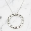 Hilary&June's handcrafted Sterling Silver 925 Large Circle of Love Necklace is inspired by the continuous flow of love between family and friends. The circle charm can be personalised on one side with names, words, dates and symbols. Symbols include hearts, stars, and the infinity symbol.