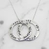 Hilary&June's handcrafted Sterling Silver 925 Double Circle of Love Necklace is inspired by the continuous flow of love between family and friends. The circle charms can be personalised on one side with names, words, dates and symbols. Symbols include hearts, stars, and the infinity symbol.