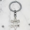 The personalised puzzle piece key ring is made of pure sterling silver and is hand stamped with a personal message, names or dates.