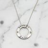 Give the ultimate unique and personalised gift with this hand stamped small sterling silver circle of love pendant necklace. You can get it hand stamped with words and symbols such as hearts, flowers or stars in between the names.
